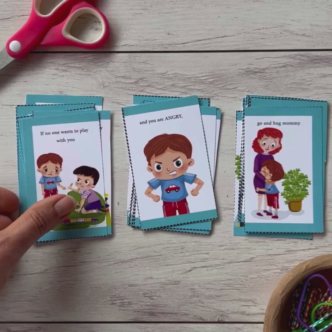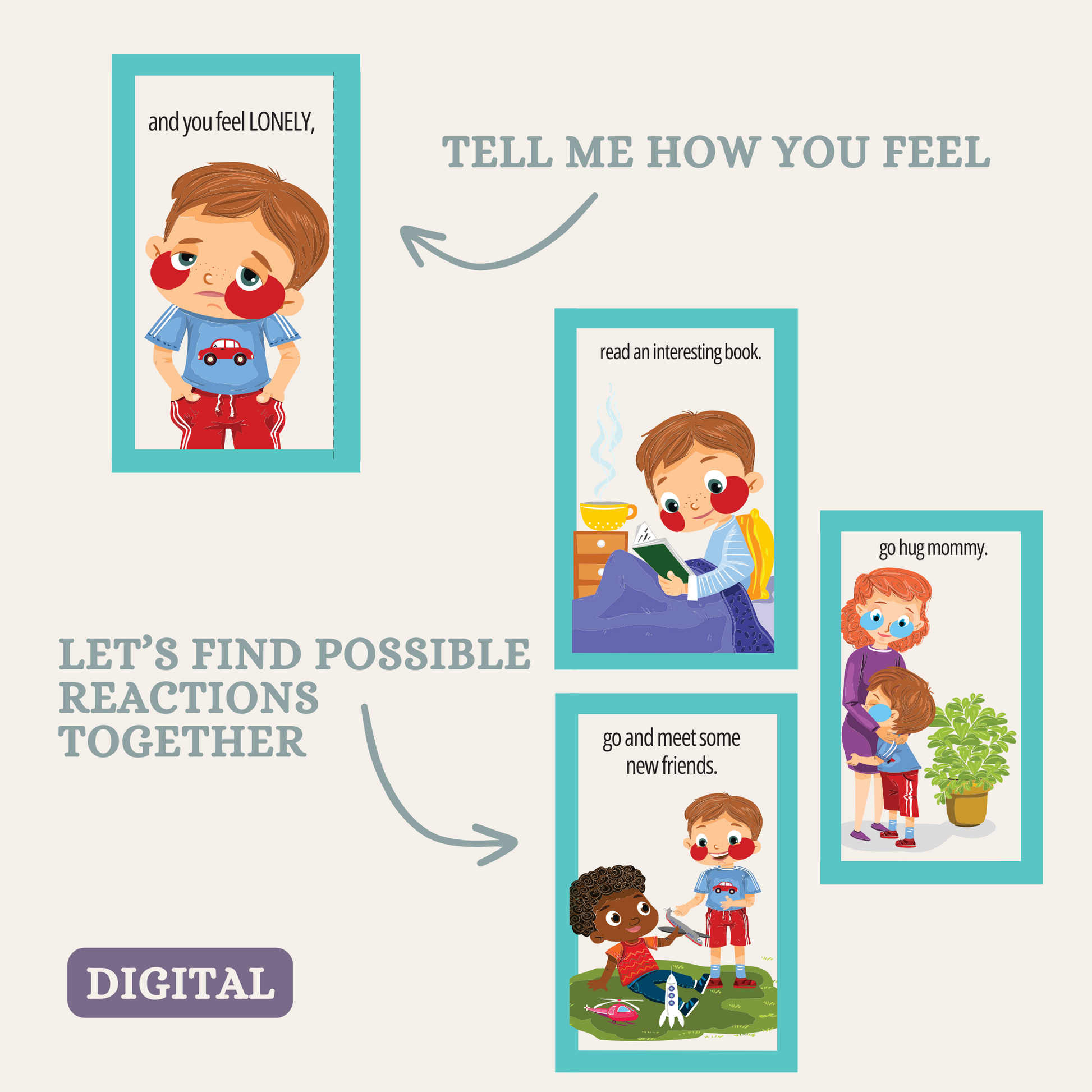 These cards are all about getting kids to open up and share what they're feeling. There’s no pressure of right or wrong answers. Each card shows different scenarios that can stir up emotions, along with potential reactions. It’s a fantastic way to help your child learn about feelings and reactions in a safe, playful environment.